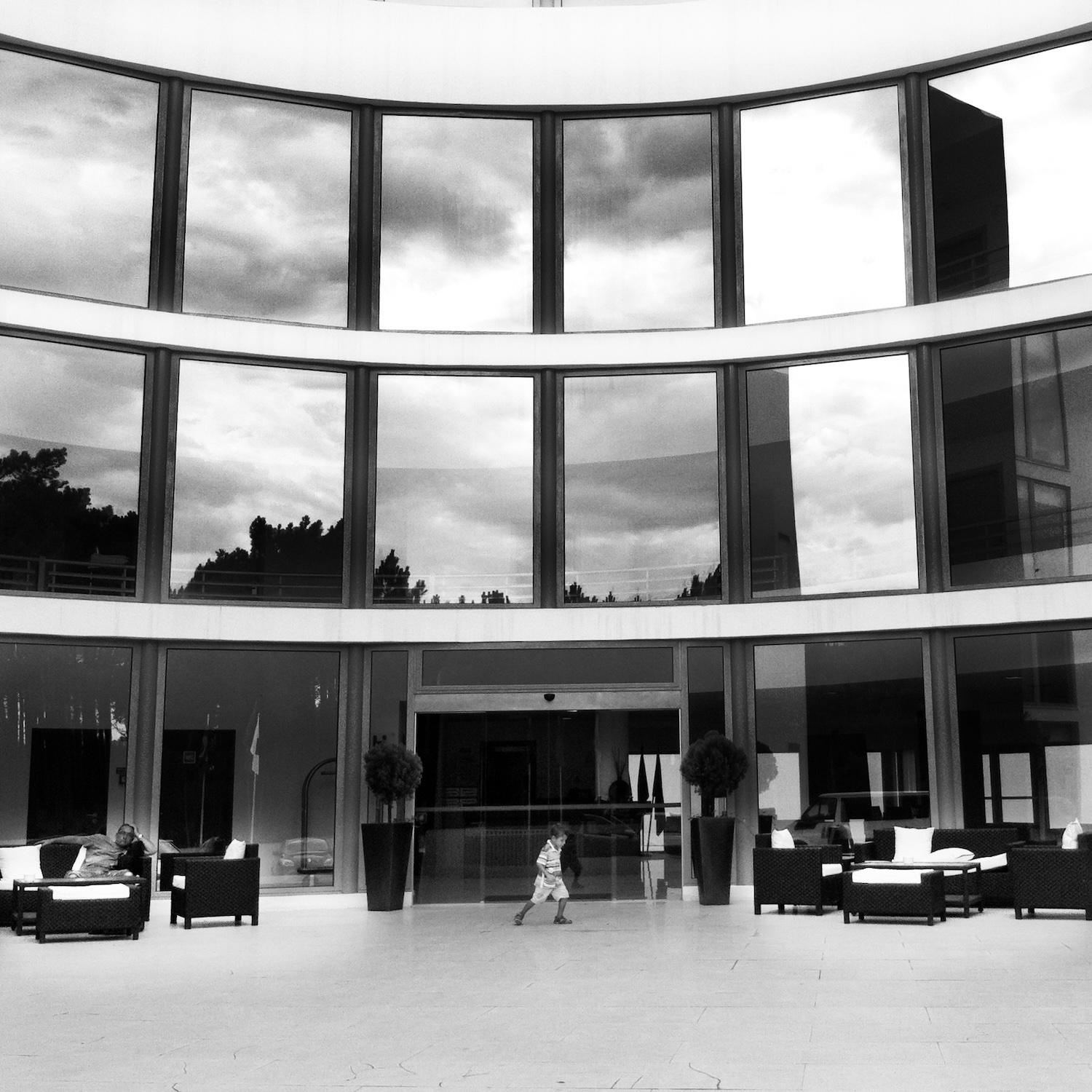 São Paulo, 2013. This is the Matsubara Hotel — my usual stay whenever visiting the city, just a short walk from Avenida Paulista. I always found the geometry of its interior striking: the symmetry of the elevators, the reflections on the marble, and the light filtering through the glass ceiling.